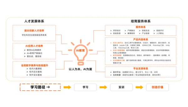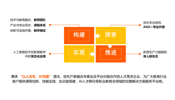 打造 “AI+商务”“AI+软件”“AI+设计” 等专业,构建完善的人工智能专业教学体系,培养专业人才。